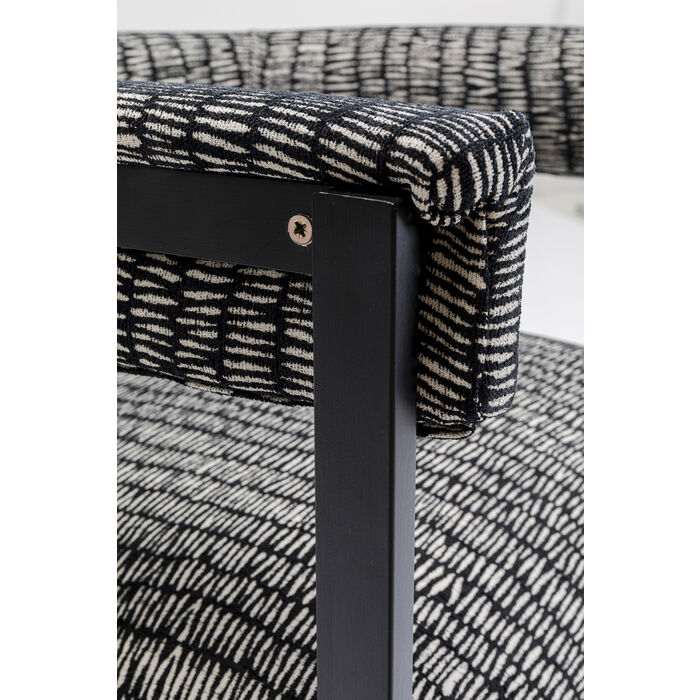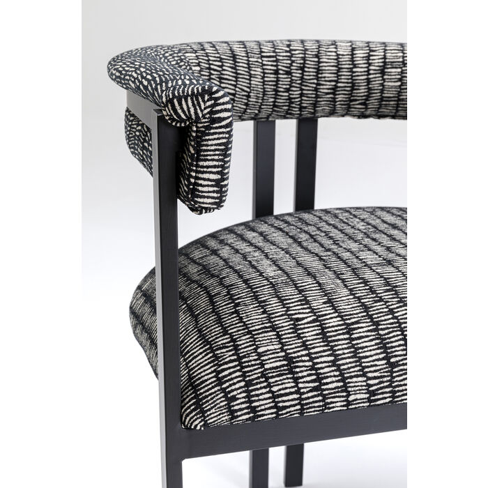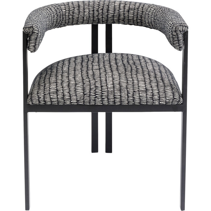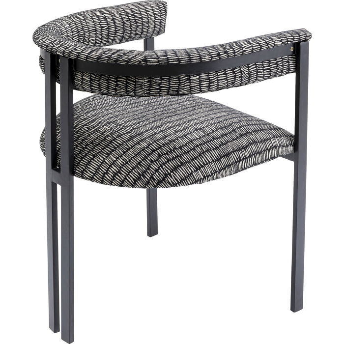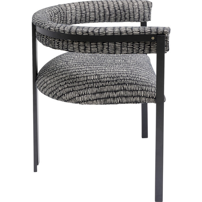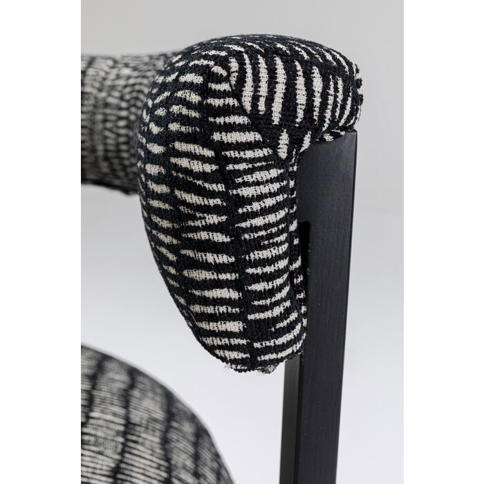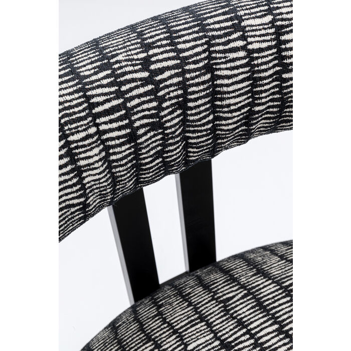 Stolica s crno-bijelo uzorkom pokriva elegantan i moderan dizajn. Presvlake i okrugli naslon pružaju udobnost dok sjedite. Veći je problem ustati se nego ostati sjediti. Zahvaljujući dopadljivom dizajnu svojih nogu, ova stolica ova stolica je također savršena u hodniku, za radnim stolom ili gdje god ju vi zamislite.