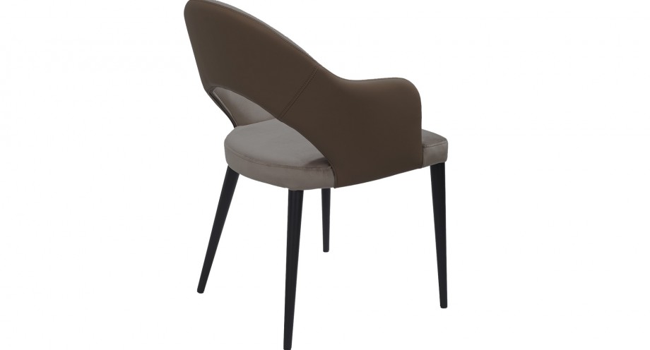 Blagovaonska stolica presvučena finom tkaninom u prednjem dijelu, dok je stražnji dio naslon u visokokvalitetnoj mekanoj umjetnoj koži. Crne metalne noge. Stolica ima jedinstven dizajn s dva lica što ju čini ekskluzivnim i suvremenim komadom, koji će zajamčeno učiniti vaš prostor nesvakidašnjim.