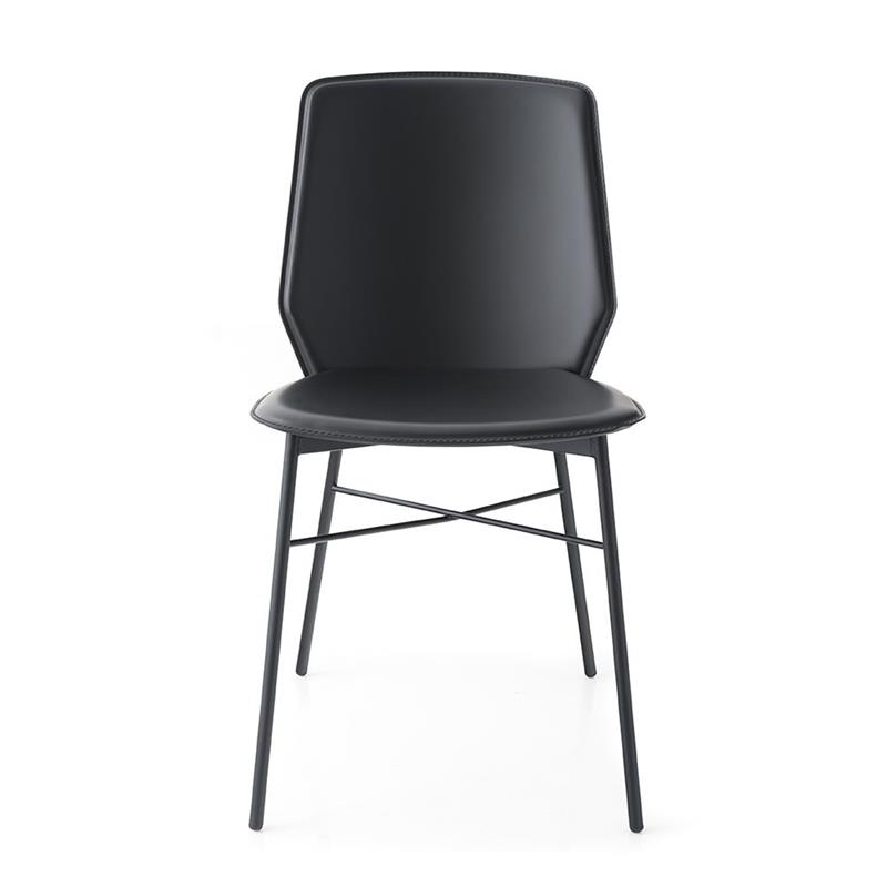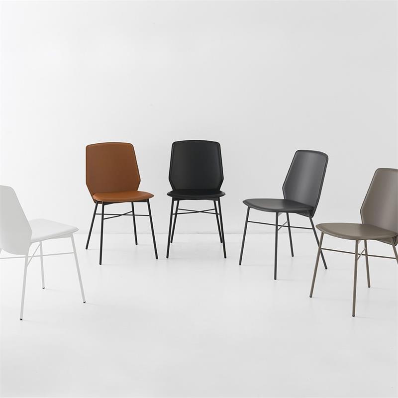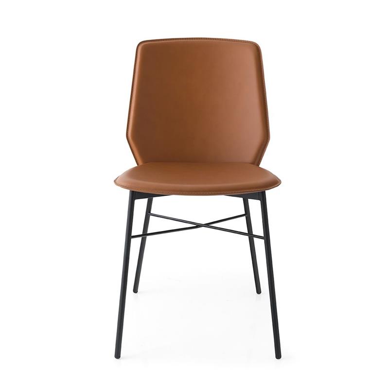 Stolica Sibilla s metalnim postoljem i sjedištem od iverala koje je presvučeno regeneriranom kožom s vidljivim šavovima. Moderna i funkcionalna stolica, savršena za blagovaonicu. Dostupna je u raznim bojama.