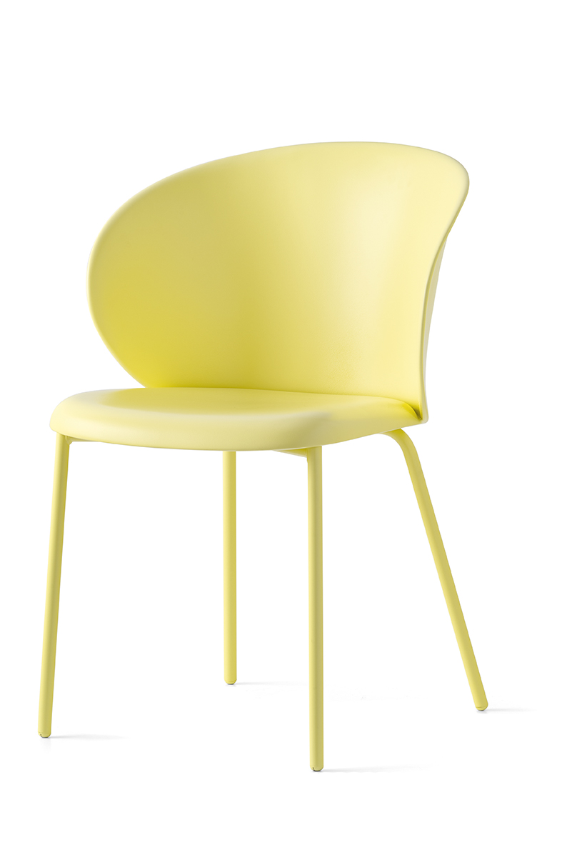Tuka je nova, moderna i udobna stolica idealna za dnevni boravak zahvaljujući postavljenom i oblikovanom naslonskom dijelu koji ugodno podržava leđa. Tuka stolica s 4 metalne noge te sjedalom s fiksnom presvlakom koja obuhvaća cijeli naslon. Naslon može biti od umjetne kože ili od tkanine u Mat ili Cros verziji.