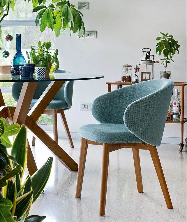 Tuka je nova, moderna i udobna stolica idealna za dnevni boravak zahvaljujući postavljenom i oblikovanom naslonskom dijelu koji ugodno podržava leđa. Tuka stolica s 4 drvene noge (drvo bukve) te sjedalom s fiksnom presvlakom koja obuhvaća cijeli naslon. Naslon može biti od umjetne kože ili od tkanine u Mat ili Cros verziji.