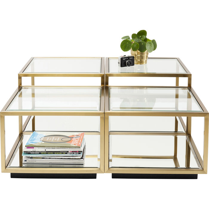 Jedan stol, ali beskrajne mogućnosti! Luigi se sastoji od četiri staklene kocke koje zajedno čine veliki stolić, ali se također mogu rasporediti pojedinačno ili u parovima u sobi. 31x50x31 cm mali 2x, 38x50x50 cm veliki 2x