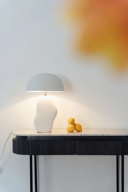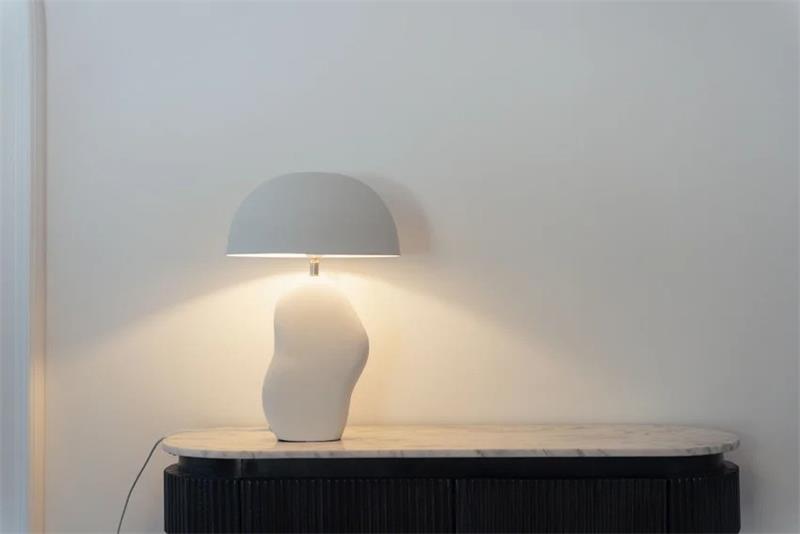 Stolna lampa Nube White unosi mekoću i eleganciju u svaki interijer zahvaljujući svom skulpturalnom i suvremenom dizajnu. Njezin zaobljeni, oblaku sličan postament u mat bijeloj boji daje prostoru profinjen, umjetnički dojam. Široka sjenilica promjera 30 cm pruža ugodnu, raspršenu svjetlost idealnu za dnevne sobe, spavaće sobe ili radne kutke. Visine 48 cm, lampa je dovoljno upečatljiva da služi kao dekorativni element, a istovremeno dovoljno neutralna da se uklopi u razne stilove uređenja. Nube White je spoj funkcionalnog svjetla i modernog dizajna koji podiže atmosferu svakog prostora.