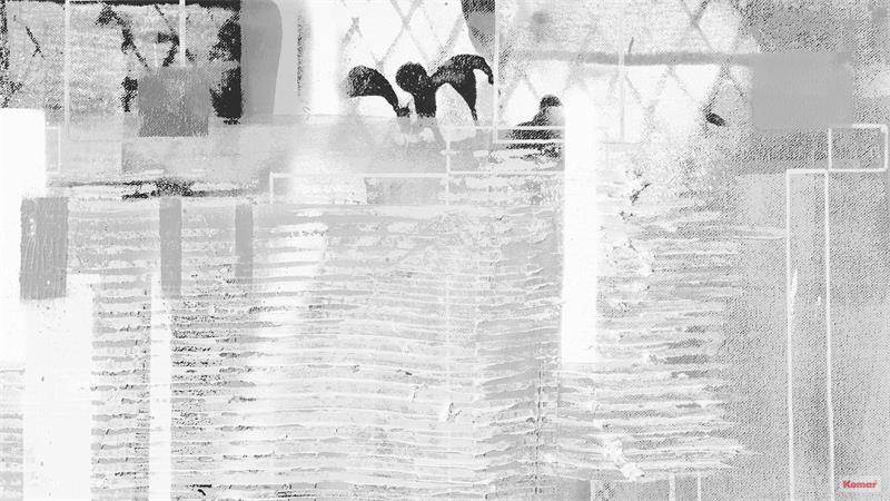 Rhombus Hiding: Eksplozija površine! Biljke rastu na slikovitim dijamantnim rešetkama. Preko slike prolazi oluja linija. Brušene pruge guraju udesno. Višeslojni strukturni pakao pun impulzivne dinamike.