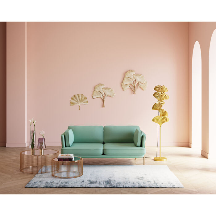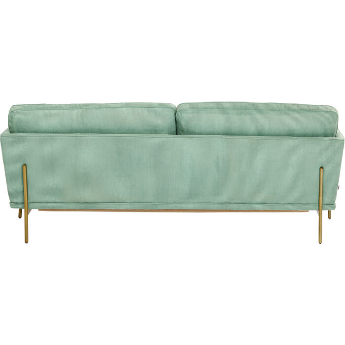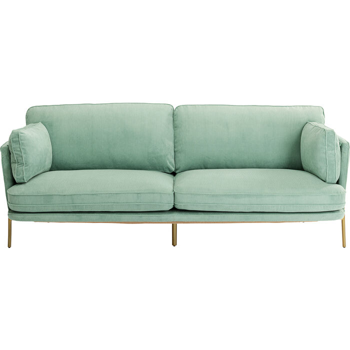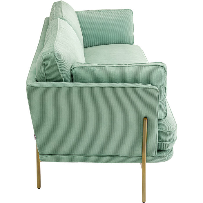 Ugodan trosjed pravo je blago za vaš dnevni boravak sa svojom praktičnom širinom od 166 cm. Stvara ugodno mekan osjećaj s rebrastom strukturom. Boja mente u kombinaciji s okvirom u boji mesinga izgleda sjajno u svakoj prostoriji. Čvrsta struktura izrađena je od drva, okvir i noge izrađeni su od lakiranog metala. Bez brige oko sastavljanja jer trosjed dolazi sastavljen!