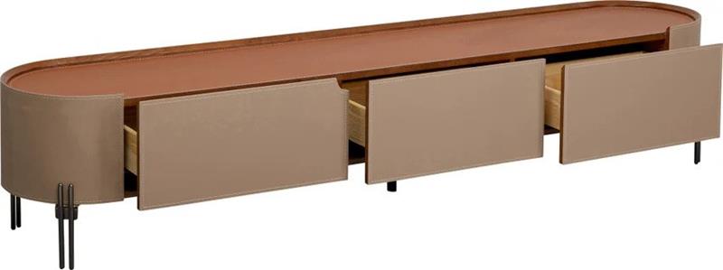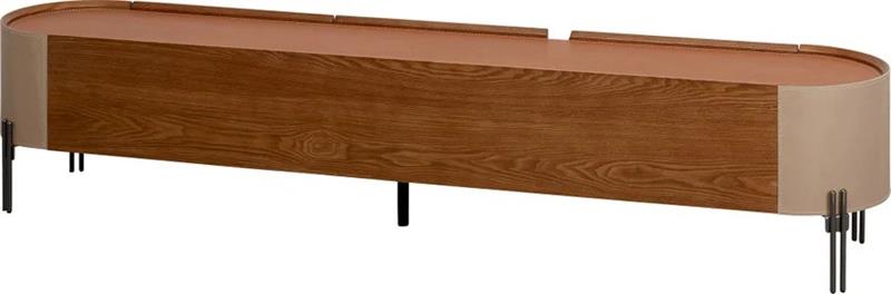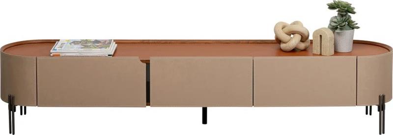 TV komoda Tango dimenzija 200x40x41h cm savršen je izbor za moderne prostore, pružajući kombinaciju stila i funkcionalnosti. Izrađena od metalnih okvira, eko kože i MDF-a, komoda donosi sofisticiran izgled uz visoku trajnost. Njezina elegantna površina s eko kožom lako se održava, dok unutrašnji prostor omogućuje praktično odlaganje svih potrebnih stvari, od elektronike do dekoracija. Metalne noge pružaju stabilnost i dodaju moderan, industrijski izgled. Ovaj komad namještaja savršeno se uklapa u dnevne sobe, prostore za zabavu ili hodnike, te pruža organizirani prostor za TV uređaje i dodatnu opremu. TV komoda Tango je idealan odabir za one koji traže sofisticiranu i funkcionalnu opciju za svoj prostor.