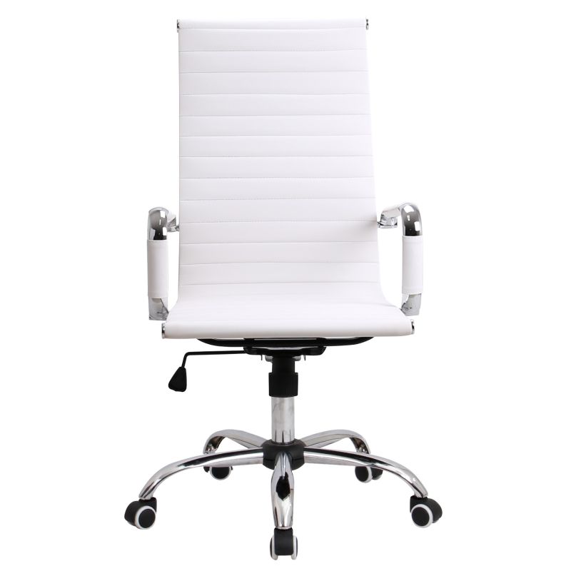 Uredska stolica od umjetne (PU) kože s naslonima za ruke. Podnožje je kromirano s gumenim kotačićima. Ima funkciju okretanja i podesiva je po visini. Maks. nosivost: 120 kg. Visina sjedala: 45-55 cm. Visina naslona: 65 cm. Dostupna u crnoj i bijeloj boji.