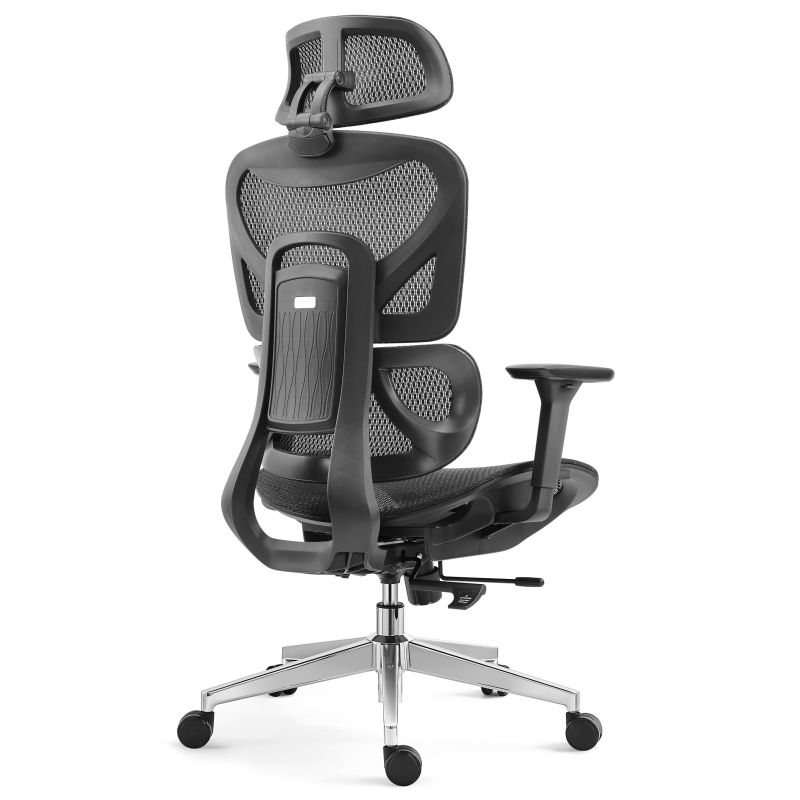 Naslon i sjedalo presvučeni su mrežastom tkaninom koja omogućuje slobodan protok zraka. Za dodatnu udobnost, stolica također ima podesivu lumbalnu potporu koja se prilagođava donjem dijelu leđa, osiguravajući pravilno držanje i smanjujući naprezanje tijekom dugog radnog vremena. 4D podesivi PU nasloni za ruke omogućuju podešavanje visine, dubine, širine i kuta, osiguravajući optimalno pozicioniranje ruku prilagođeno individualnim potrebama.