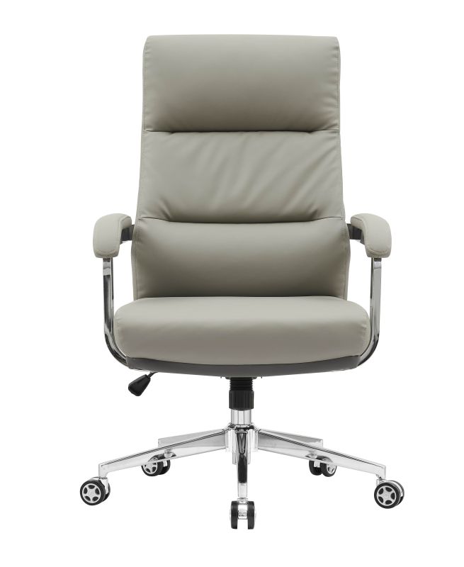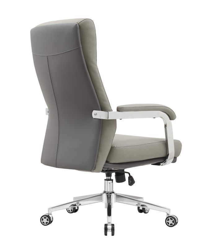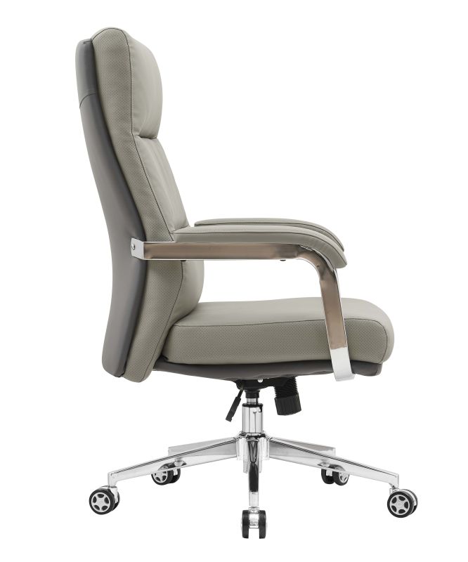 Izrađena je od visokokvalitetnih materijala – mekana, ali izdržljiva eko koža u elegantnoj sivoj boji lako se uklapa u svaki interijer, dok stabilna kromirana baza s kotačićima omogućuje lako pomicanje i visoku nosivost.