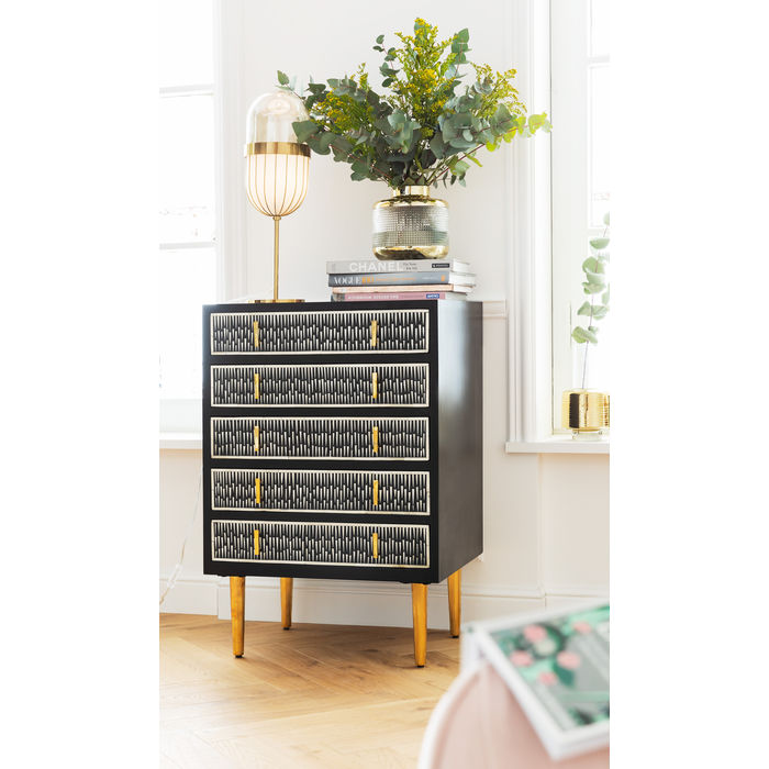 Ova vaza odlikuje se neobičnim detaljima zlatne boje i utisnutim staklom.
