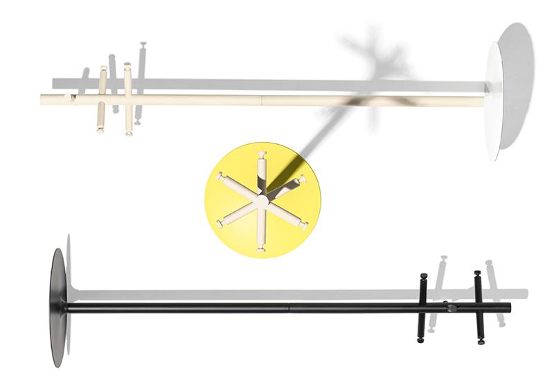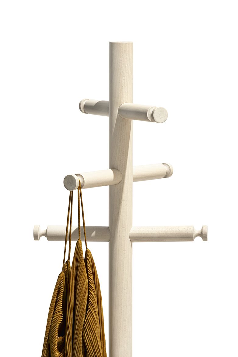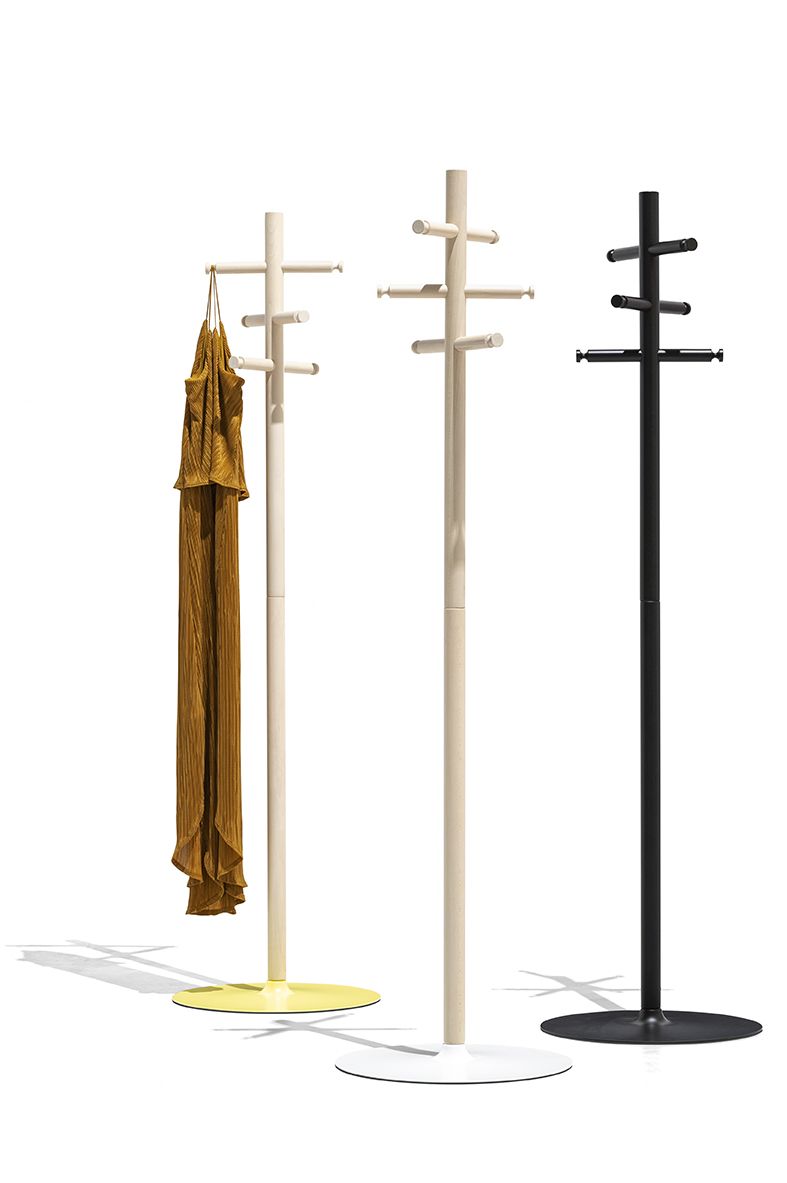 Vješalica App za kapute sa čvrstom stabilnom bazom, metalnim stupom i kukama u bukovom drvu.