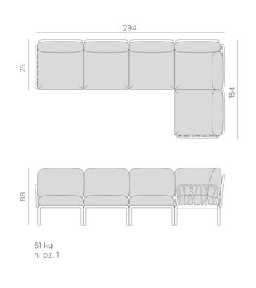 Konstrukcija Komodo 5 garniture je izrađena od polipropilena i premazana završnim slojem boje koja je otporna na UV zrake, tako da je zaštićena od UV oštećenja i možete je sigurno smjestiti u vaše vrtove, na terase i balkone te uljepšati druženja sa obitelji i prijateljima ovim zabavnim komadom vrtnog namještaja. Konstrukcija je napravljena sa zaštitom od klizanja tako da bezbrižno možete uživati u dizajniranim kombinacijama sjedenja bez straha od odvajanja elemenata.