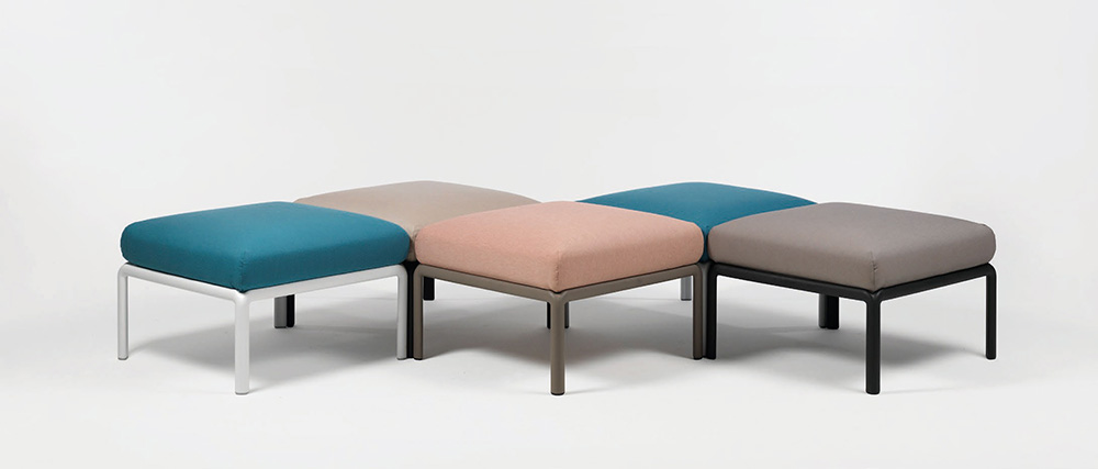 Moderna modularna garnitura Komodo 5 izašla je iz radionice Raffaelo Galiotto Deisgn. Njezin koncept zamišljen je kao idealno rješenje za potrebe urbanog načina života gdje je sve brzo promjenjivo i adaptabilnost je jedna od najvećih vrlina. Garnitura Komodo 5 sastavljena je od 5 sjedećih polipropilenskih konstrukcijskih djelova koji su kompletno odvojivi na singularna sjedišta, uz fleksibilne naslone i rukonaslone koji se mogu zakačiti sa svih strana, tako da vam dozvoljava kombinacije veličine i oblika sjedišta po potrebi, kao što možete vidjeti ispod: