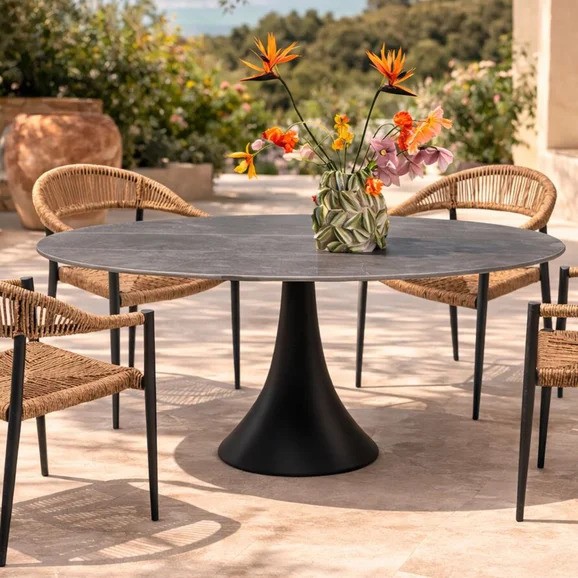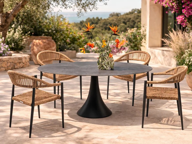 Vrtni set Palma Possibilita 180 cm Nature donosi elegantan spoj prirodnog izgleda i modernog dizajna, savršen za terase i vrtove. Konstrukcija od aluminija osigurava čvrstoću, otpornost na vremenske uvjete i dugotrajnost. Stol s keramičkom pločom pruža izdržljivu i jednostavnu površinu za održavanje, idealnu za svakodnevnu upotrebu. Stolice s detaljima u natur tonu i poliuretanskim pletivom nude udobnost i prozračnost tijekom sjedenja. Kombinacija boja natur, sive i crne lako se uklapa u različite stilove vanjskog uređenja. Ovaj set predstavlja savršen balans funkcionalnosti, estetike i kvalitete za uživanje na otvorenom.