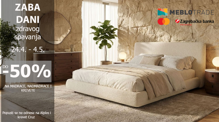 Od 24.4. do 4.5. iskoristite do 50% popusta na madrace i krevete za plaćanje ZABA karticama