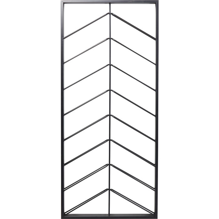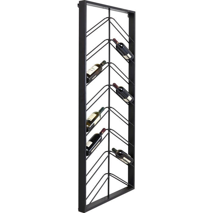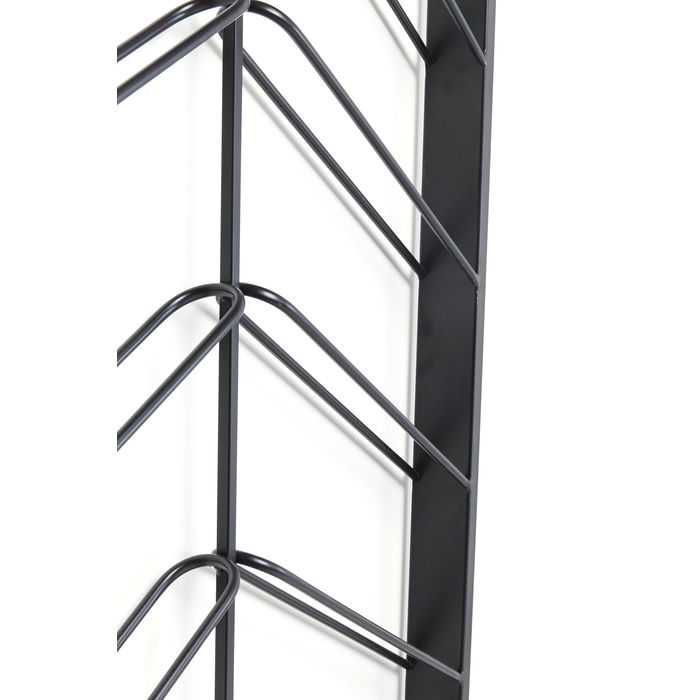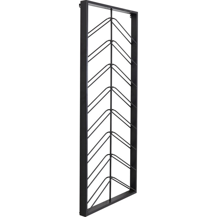 Crna zidna polica od punog metala u grafičkom dizajnu za 16 boca. Praktična za čuvanje vinskih boca, ali zahvaljujući dizajnu također se može koristiti i bez njih. Ova polica za vino također se uklapa u kuhinju i blagovaonicu. Čisti industrijski šik koji se lako kombinira s mnogim stilovima opremanja zahvaljujući svom dizajnu.