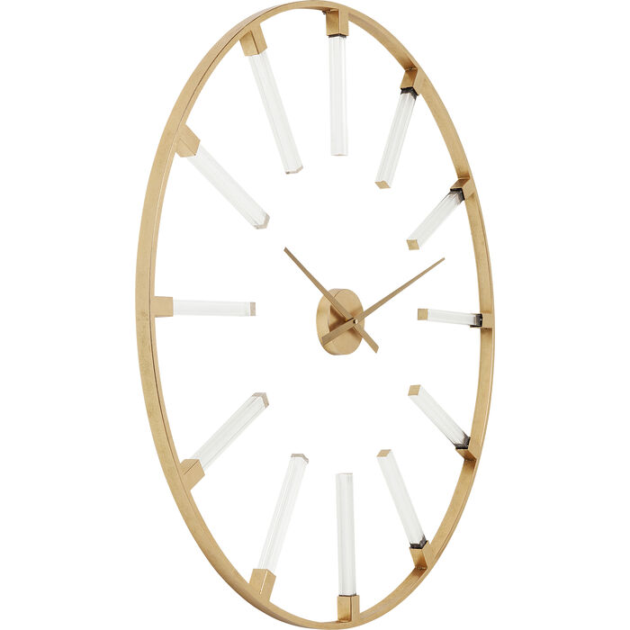 Clip Gold sat zadivljuje ne samo ipresivnom veličinom, već i profinjenom konstrukcijom koja mu daje moderan i minimalistički izgled. Posebno lijepo izgleda na obojenom zidu ili na zidu s tapetom s uzorkom. Promjer sata je 107 cm.